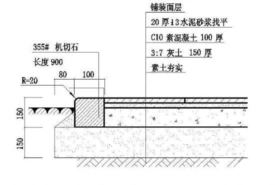 ②人工按放線位置安裝路緣石。安裝前,基礎要先清理干凈,并保持濕潤。安裝時,先用線繩控制路緣石的直順度,再用水平尺進行檢查,安裝合格后及時采用C20混凝土進行后背澆筑。路緣石砌筑應平順,相鄰花崗巖路緣石縫用4mm厚鐵板或塑料板控制,相鄰混凝土路緣石縫用8mm厚鐵板或塑料板控制,相鄰路緣石的縫隙應均勻一致,路緣石與路面無縫隙、不漏水。