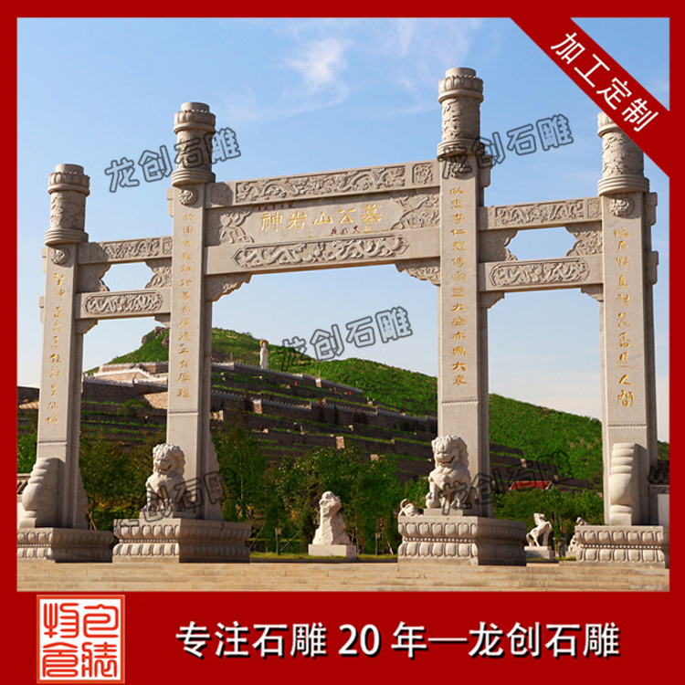 第二個(gè)因素就是石牌坊的樣式及尺寸大小。以我廠制作多年的石牌坊經(jīng)驗(yàn)來(lái)看,常見(jiàn)的石牌坊樣式有很多,比如單門石牌坊,三門沖天式,三門三樓,三門五樓,三門七樓等,單門石牌坊屬于小型石牌坊,價(jià)格也會(huì)比較低,6萬(wàn)到10萬(wàn)之間不等。三門的石牌坊價(jià)格在10萬(wàn)到幾十萬(wàn)不等,所以石牌坊的價(jià)格與石牌坊的樣式大小又直接的關(guān)系。