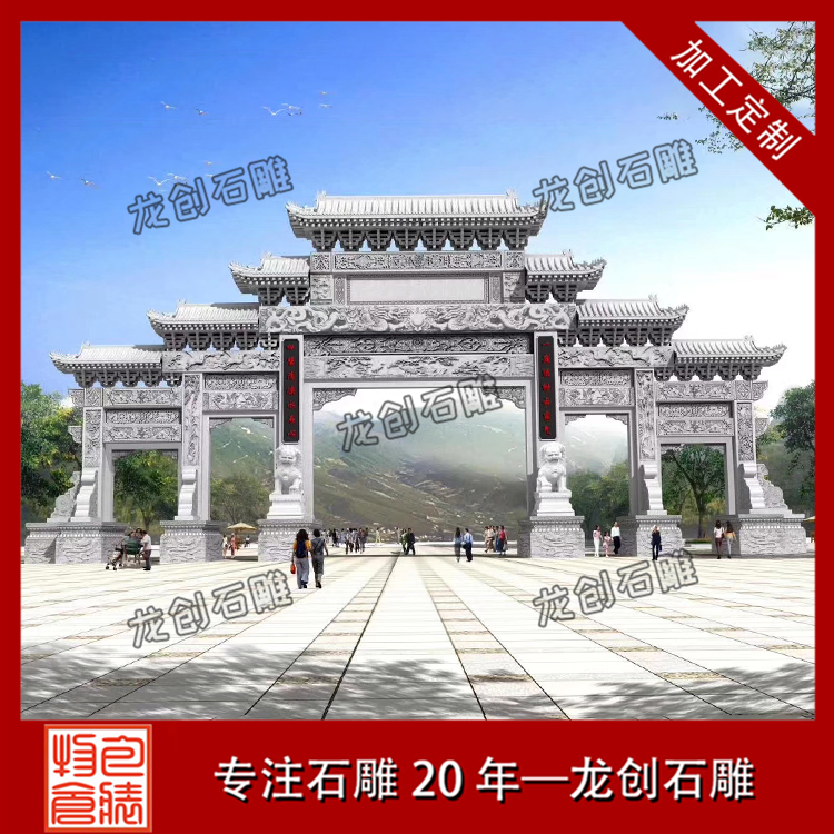三門農村石牌樓:從目前的石牌樓的設計款式來看,三門農村村口農村石牌樓經常安裝在農村的出入口處。鄉(xiāng)村牌坊的設計是經過歷史發(fā)展而沉淀下來的。它廣泛用于農村建設和旅游區(qū)及寺院等處。它在使用中中很受大眾們的歡迎。三門農村石牌樓造型精美、設計對稱,整體設計以及設計款式及造型也有許多新的改進和更新。它選擇了更加多樣的精美雕塑圖案,這樣會更加打造精美的牌坊作品。普通三門農村石牌樓價格在12-25萬元左右。雕刻很精細的石牌樓,價格可能幾十萬。