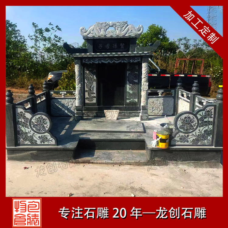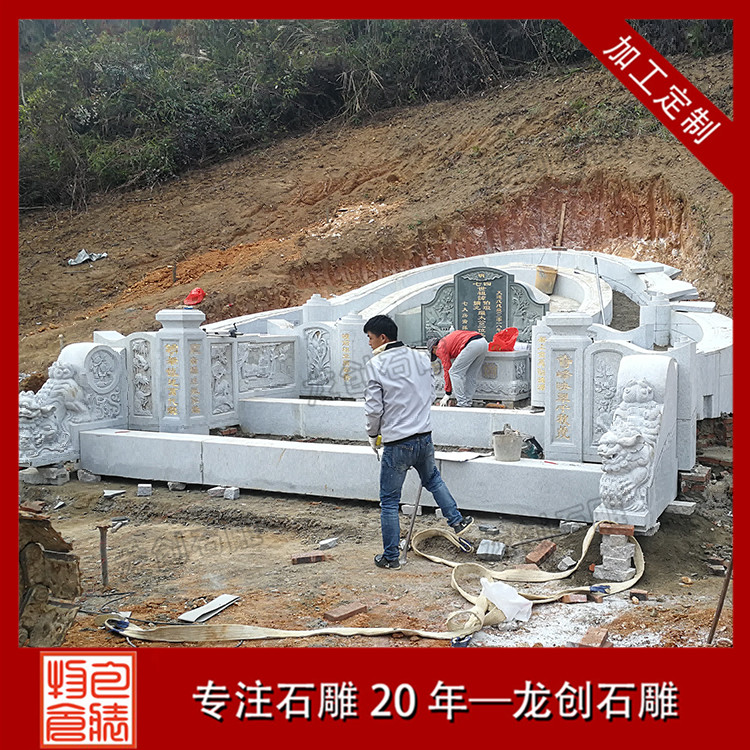 二、結(jié)構(gòu)比較復(fù)雜,復(fù)式石雕墓碑采用復(fù)式的結(jié)構(gòu)就表示墓碑會(huì)更加的接近傳統(tǒng)的豪華套墓,比如復(fù)式墓碑的圍欄就特別長(zhǎng),平臺(tái)也特別大,墓碑板和墓碑祭拜的地方也會(huì)相對(duì)大一點(diǎn)。在結(jié)構(gòu)方面,復(fù)式墓碑需要對(duì)墓碑所處的地方全部的整平,石材和雕刻的部分也會(huì)相對(duì)多一些。