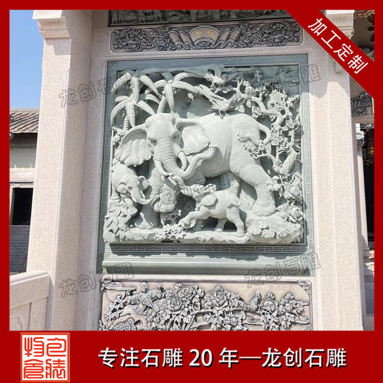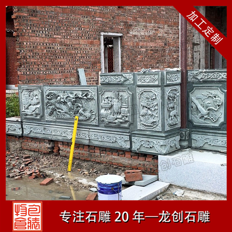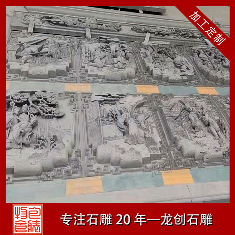 石材浮雕墻作為宗祠建筑中的重要裝飾元素,通過傳統雕刻工藝,將各種圖案、人物、文字等刻畫于石材上,以展現出豐富多彩的宗祠文化內涵。浮雕墻上的石雕作品,既具有藝術性的觀賞性,又承載著宗祠的歷史定位、修建初衷以及家族的傳承精神。而這些石材浮雕墻正是傳承和守護著廣東的家族文化和嶺南文化。
