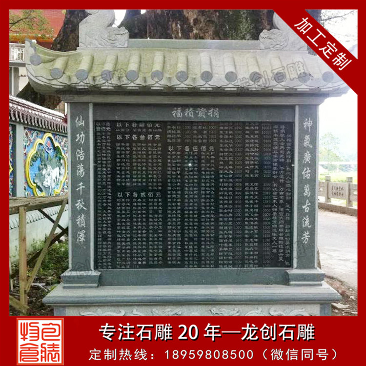 在傳統(tǒng)的中國文化中,祠堂是家族或宗族進(jìn)行祭祀、教育和聚會(huì)的重要場(chǎng)所。而捐資功德碑和芳名碑,則是記錄家族成員捐資助學(xué)或其他社會(huì)公益活動(dòng)的重要形式,具有極高的文化和歷史價(jià)值。今天我們將圍繞“祠堂捐資功德碑芳名碑一般做多大尺寸”這一話題,深度探討其尺寸、設(shè)計(jì)、材料及相關(guān)注意事項(xiàng),以便幫助家族或宗族更好地傳承和表達(dá)文化,促進(jìn)和諧家庭關(guān)系。一個(gè)優(yōu)質(zhì)的捐資功德碑,不僅僅是一塊石碑,它更承載著濃厚的家族情結(jié)和文化印記。