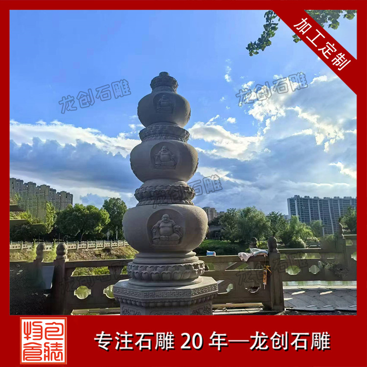 此塔選用質(zhì)地堅(jiān)硬、耐風(fēng)化的花崗巖材質(zhì),確保能歷經(jīng)歲月洗禮而不損。雕刻工藝精湛,綜合運(yùn)用圓雕、浮雕。塔身主體的彌勒佛像采用深浮雕,立體呈現(xiàn)彌勒大肚便便、笑容可掬的形象,面部表情細(xì)膩,神態(tài)慈祥。塔身上的蓮花等裝飾圖案則運(yùn)用深淺浮雕,線條流暢,層次分明。