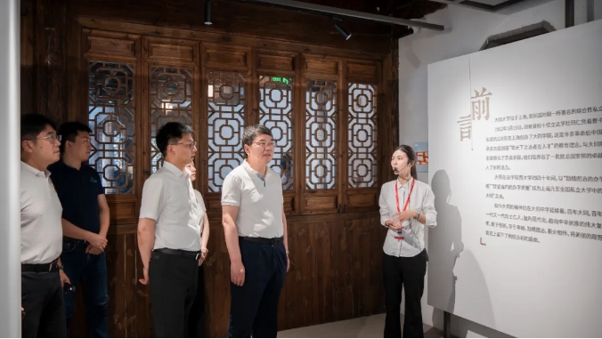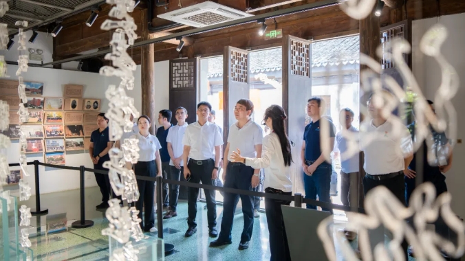 在專業講解員的引導下,丁漢院士一行沿著歷史脈絡,依次參觀了胡壹修胡雨人故居、胡漢學舊居、胡氏公立蒙學堂舊址及胡氏積谷倉遺址。大家深入學習了胡氏家族“誠勤立達”家訓的深刻內涵,并重點聚焦近代著名教育家胡雨人先生矢志不渝興辦新學、探索科教救國的感人事跡與卓越貢獻。館內塵封百年的家訓手稿、泛黃的教育文獻、 生動的家風故事與互動展陳,不僅鮮活再現了胡氏家族“讀書明理、實干報國”的優良傳統,更讓大家深刻感受到胡雨人先生作為中國近代新式教育,特別是理工教育拓荒者的遠見卓識。他創辦胡氏公立蒙學堂等新式學校,系統引入物理、算術等西式課程,開江南地區新式教育風氣之先,尤其強調數理等基礎學科的教育,致力于培養經世致用之才,其敢為人先的教育理念與實踐為中國現代理工教育的發展奠定了重要基石。這種將個人、家族命運與國家、民族前途緊密相連的精神內核,與當代科研工作者“嚴謹治學、服務國家”的追求高度契合,給丁漢院士及隨行科技工作者留下了深刻印象。