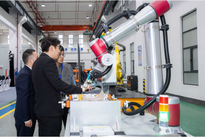 喬遷慶典在莊重熱烈的氛圍中拉開帷幕。惠山經開區黨工委委員、管委會副主任朱丹女士,華中科技大學機械科學與工程學院副院長、謹瑜智能首席科學家彭芳瑜先生,華中科技大學無錫研究院副院長浦棟麟先生,謹瑜智能執行董事鄭妍女士共同為新址揭牌。紅綢輕啟,標志著謹瑜智能正式扎根惠山產業沃土,以全新姿態邁向技術創新與產業落地的加速期。