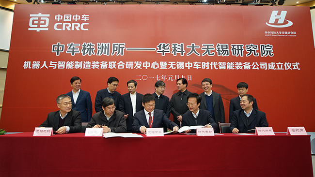 中新網(wǎng)南京1月9日電 (記者 孫權(quán))1月9日上午,由中車株洲所與華中科大無錫研究院科研團(tuán)隊(duì)合作創(chuàng)立的無錫中車時(shí)代智能裝備有限公司在無錫市惠山經(jīng)濟(jì)開發(fā)區(qū)成立。當(dāng)天,中車株洲所——華中科技大學(xué)無錫研究院機(jī)器人與智能制造裝備聯(lián)合研發(fā)中心也同期揭牌“落地”此間。