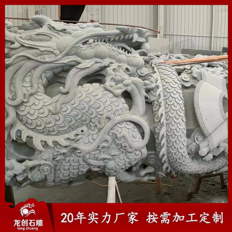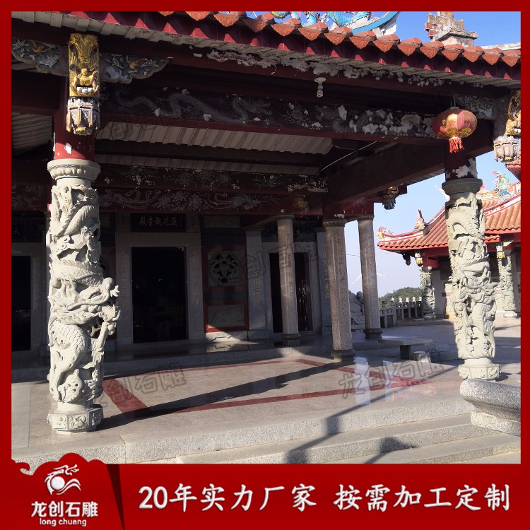 石雕龍柱又叫石雕龍抱柱、盤龍柱、滾龍柱、蟠龍柱,指在石頭上雕刻龍紋的具有指示作用的柱子。龍柱全身雕刻龍紋,一般柱子上下雕刻兩條龍,龍浮雕一般雕刻深度在3-5cm,也有雕刻7-10cm的,深度雕刻的越深龍紋越明顯,龍的神圣形象也就越突出,整個柱子也就越具有莊嚴(yán)神圣感。