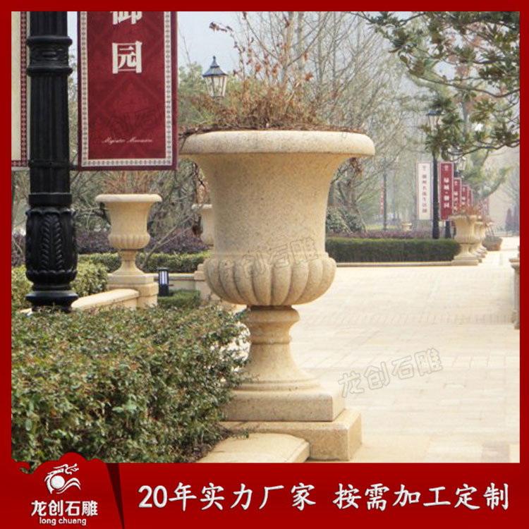 黃金麻石雕花缽和埃及米黃石雕花缽,是園林景觀設(shè)計(jì)中運(yùn)用廣泛造景元素,很多植物園、公園、草坪、廣場等處都有黃金麻和埃及米黃石雕花缽的應(yīng)用,使用不同品種不同顏色的異型石材可以與周圍景觀環(huán)境結(jié)合形成不同的視覺效果,對園林景物之間和諧、統(tǒng)一起到了很好協(xié)調(diào)作用。