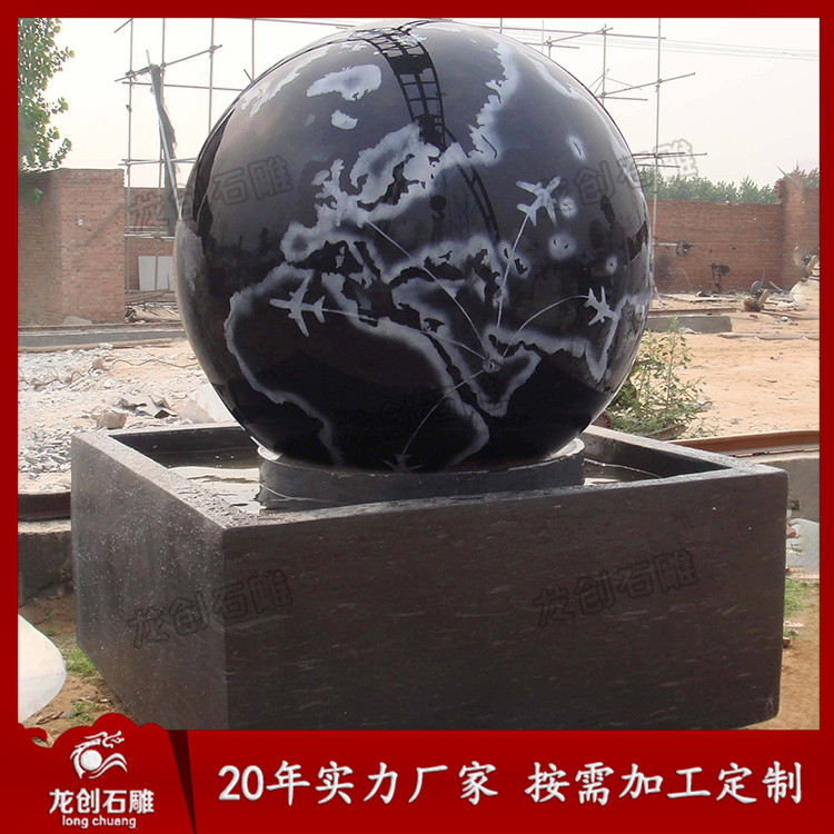 風水球石雕噴泉是一種新形式的噴泉水池雕塑,通過內置的噴泉系統,將水柱噴射在風水球上,使其不停的轉動。作業中的風水球噴泉不僅可以為人們提供很好的觀賞效果,還有很高的寓意,擺放在家庭別墅,可以給主人帶來好運,擺放在廣場,可以使當地風調雨順人們都好運連連。石雕風水球噴泉一般是會和一整個噴水池按在一起的,這樣既能擴大噴水池的關注度,也能使得流水不會濺射到路上。