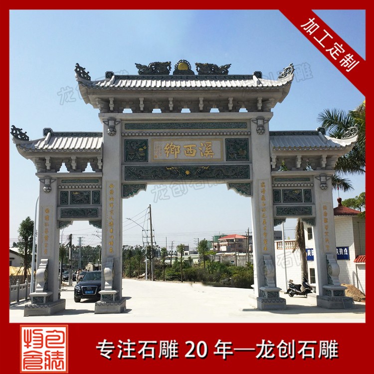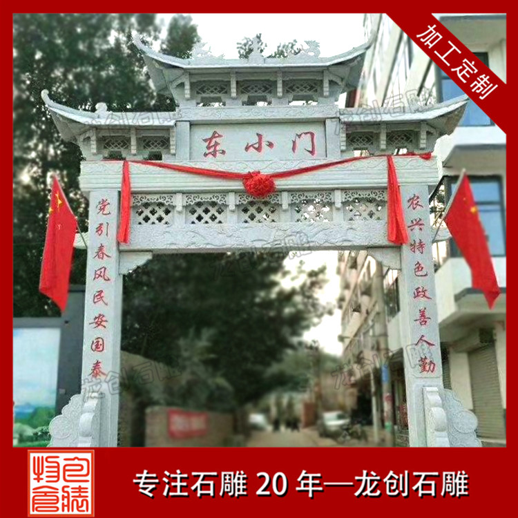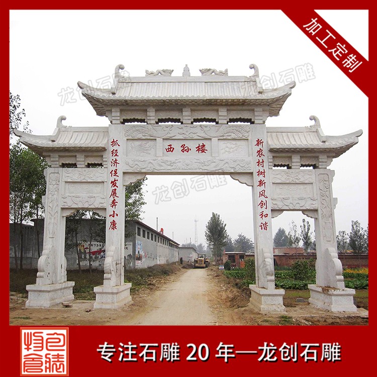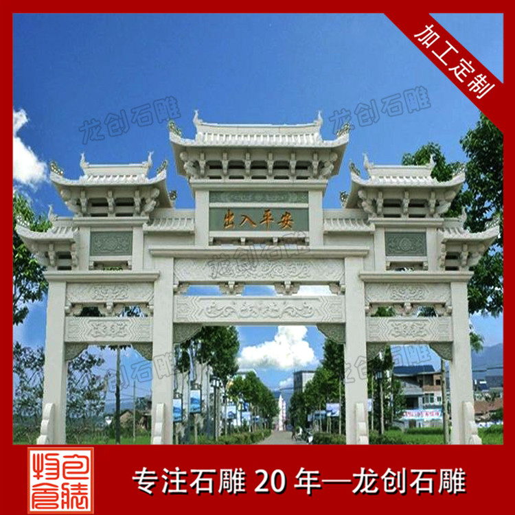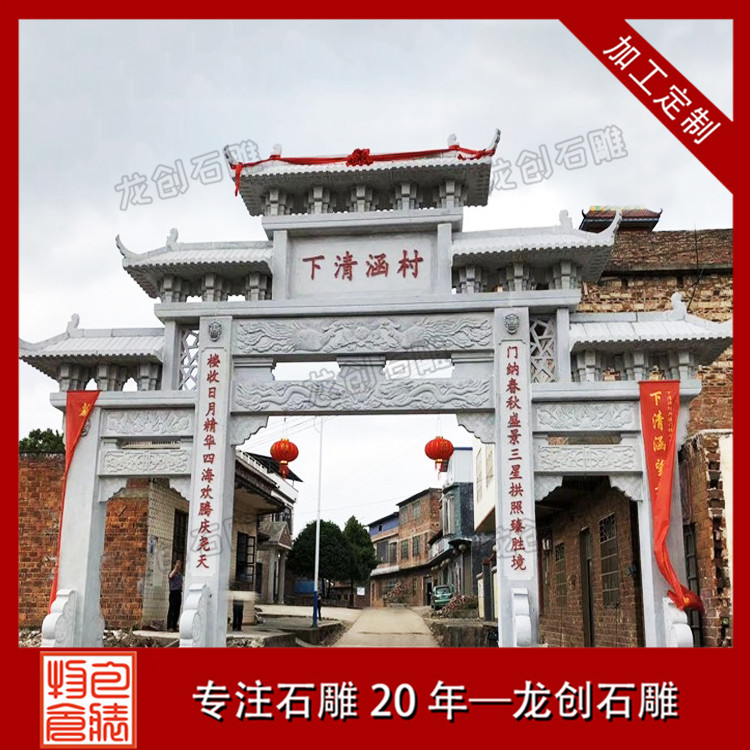 村頭石牌樓作為提高鄉(xiāng)村品牌形象的關(guān)鍵工程建筑,鄉(xiāng)村安裝的村子石牌樓村牌樓通常全是以簡(jiǎn)易大氣的主導(dǎo),例如某些這門(mén)1樓或3樓或三門(mén)3樓式的牌樓,由于這種牌樓的工程造價(jià)成本費(fèi)也不高,適合鄉(xiāng)村石牌樓的手工雕刻安裝,這都是許多鄉(xiāng)村能夠接納的緣故。手工雕刻精致的村頭石牌樓,從側(cè)邊體現(xiàn)出了,大家的人生目標(biāo),對(duì)家中祈禱安全、期盼人生道路榮華富貴、祈禱身體健康的吉祥如意意識(shí)。