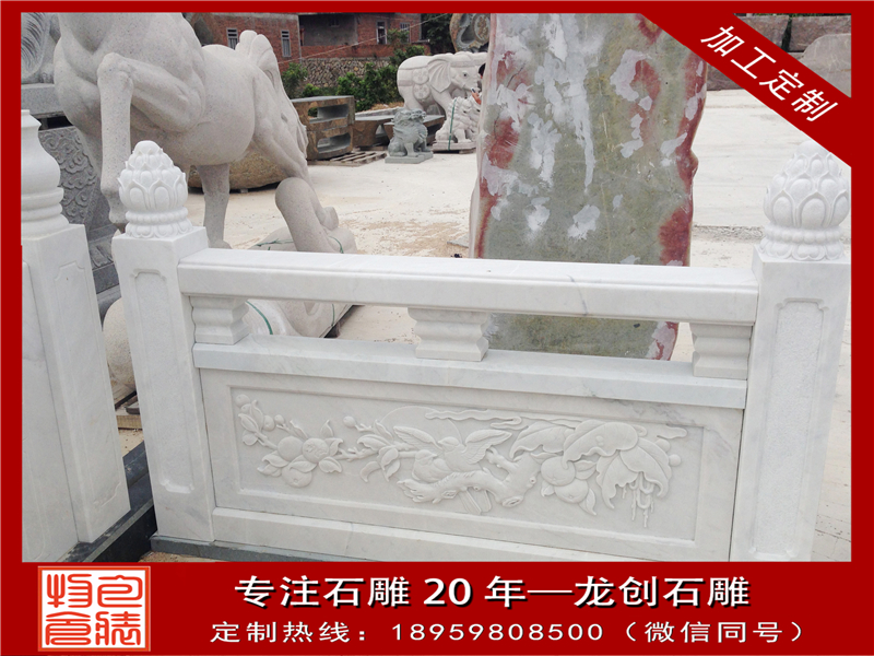 石欄桿也叫石護(hù)欄,在橋面、河邊、古建筑臺(tái)基、須彌座周?chē)际鞘o(hù)欄。石欄桿在我們生活中是非常常見(jiàn)的,尤其是在河道、橋梁,寺廟階梯各種園林山水的石道上都可以廣泛的應(yīng)用到,起到了很好的防護(hù)作用。石欄桿款式有鏤空、半鏤空、實(shí)體圓柱、方柱等幾大類(lèi)。材質(zhì)也有分花崗巖、漢白玉、青石等,本篇文章就來(lái)為大家介紹漢白玉欄桿多少錢(qián),漢白玉欄桿價(jià)格是怎么計(jì)算的。