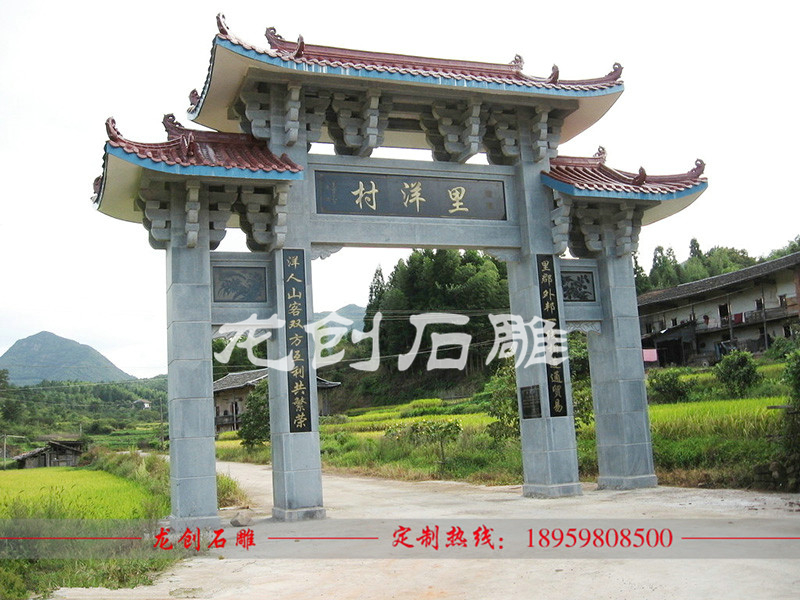 石雕農村牌樓已成為村莊入口標志,石牌坊又可以稱為石牌樓,有著悠久的歷史,現在農村石雕牌樓已經成為村莊入口標志性建筑。在我國的城鎮鄉村,隨處都可見到各種造型的石雕農村牌樓,在鄉村旅游中發揮了重要作用。石雕生產牌樓廠家龍創石雕為您介紹石雕農村牌樓。